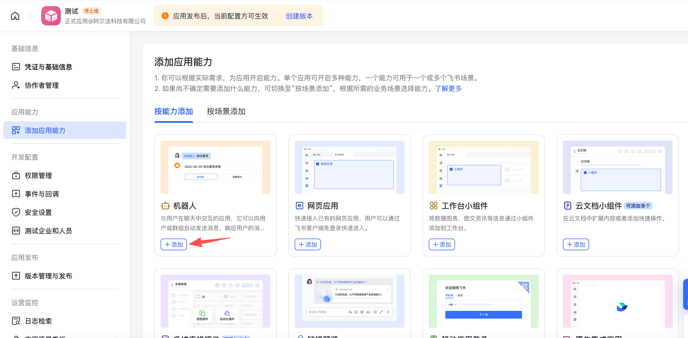 添加应用能力-机器人