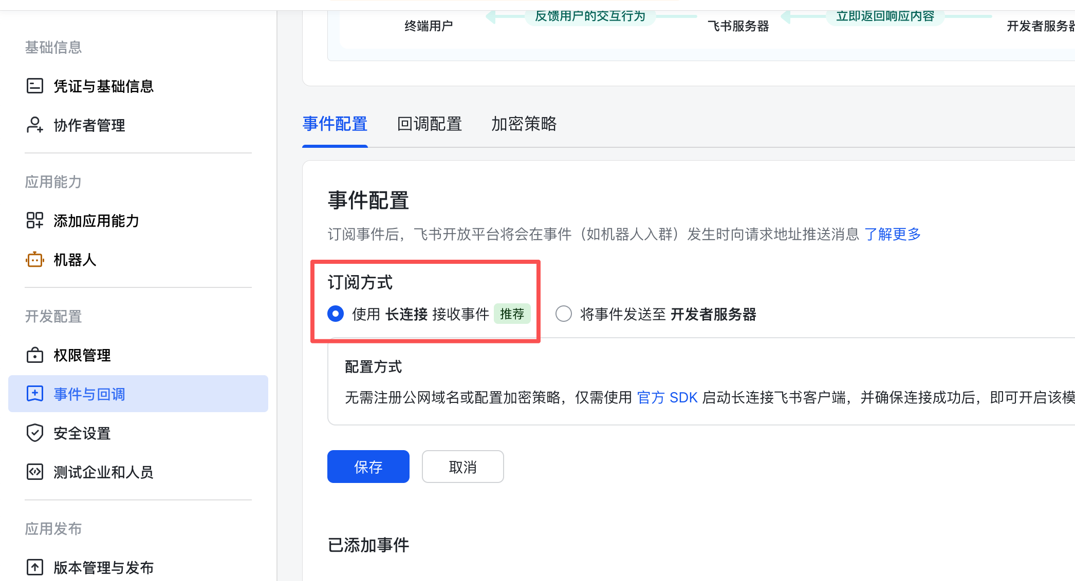事件配置与回调配置的订阅方式都是长连接。