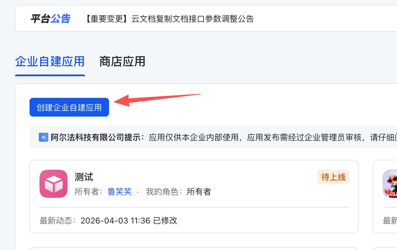 点击创建企业应用-然后填写应用信息,我这边填的测试