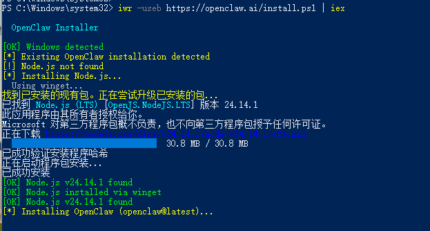 iwr -useb https://openclaw.ai/install.ps1 | iex